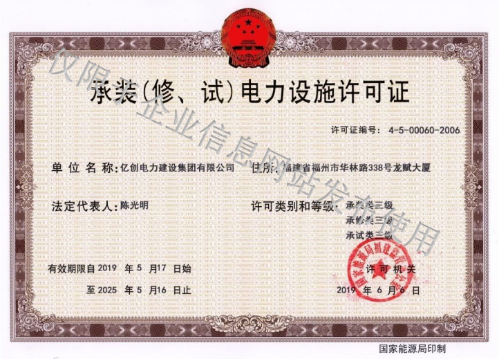 億創電力建設集團是以電力工程施工建設、水電開發與投資、風電投資、電力設備檢修、售電、設備制造等多產業的股份制企業。集團注冊資本叁億叁仟多萬元人民幣,具備建設部頒發的電力工程施工總承包叁級、機電工程施工總承包叁級、輸變電工程專業承包叁級資質和國家能源局頒發的承裝(修、試)電力設施叁級資質。