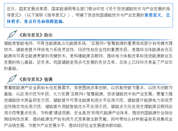 國家發展改革委、國家能源局等五部門聯合印發《關于促進儲能技術與產業發展的指導意見》