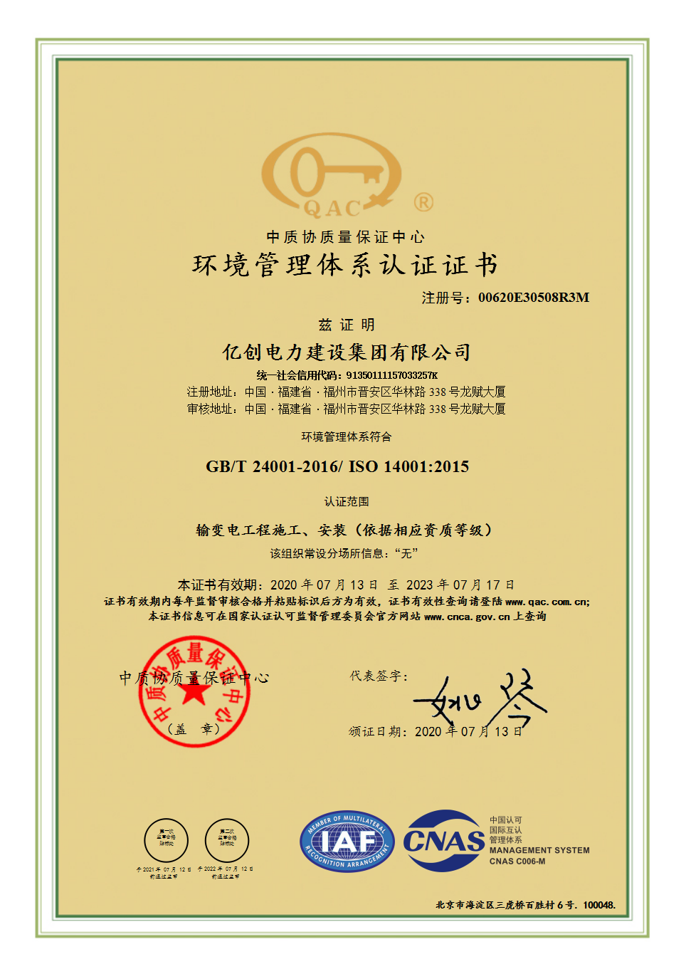 環境管理體系認證證書